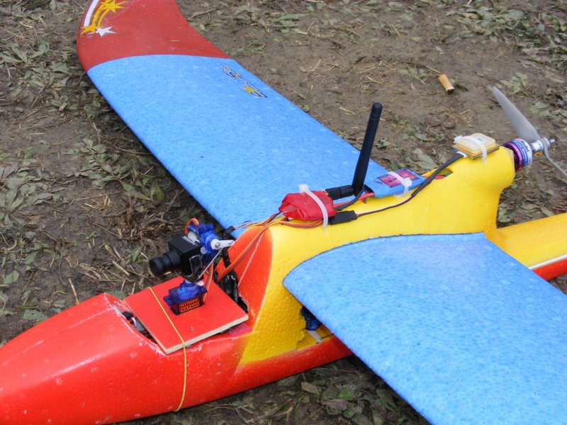 Ero attrezzato con un EasyStar dotato di camera KX171, TX da 500mW a 2m4Ghz, OSD-GPS BlackStork, antenna patch sulla ricevente e occhiali Rvision.