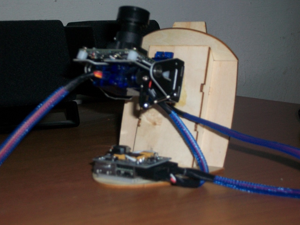 Come vedete dalla foto ho questa pan tilt con cam montata con due servi il tutto messo su questo telaietto di balsa.