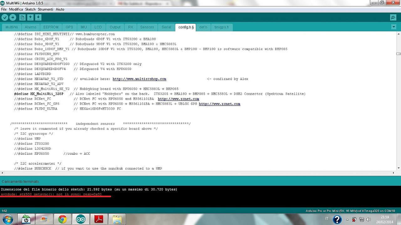 ho una scheda hobbyking multiwii 328p che però non riesco a programmare con l'IDE di arduino che mi da questo errore: