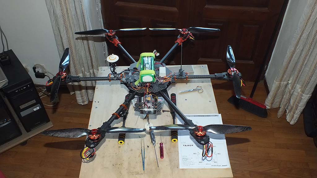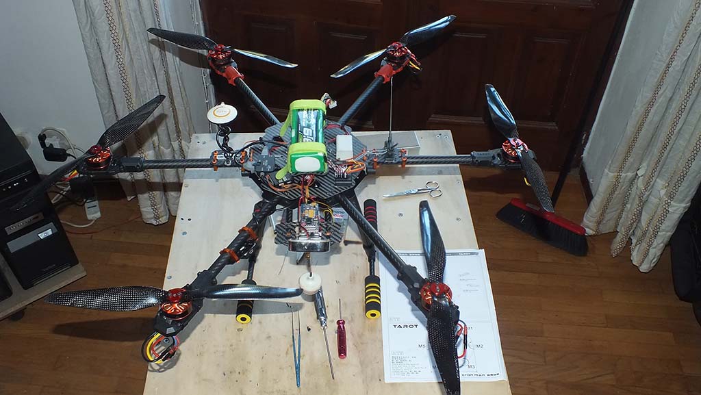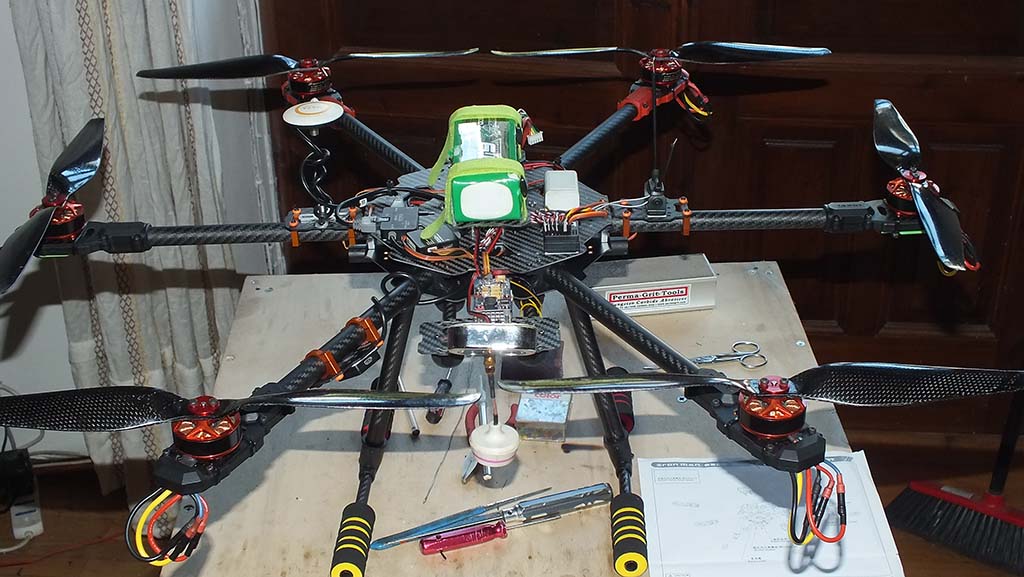 con una batteria multistar da 8 A, ho circa 25 minuti di autonomia, non ho ancora installato la gimbal e la telecamera, già così il drone in assetto di volo pesa 2750 Gr, in volo con 6 motori si comporta molto meglio dei quadri.