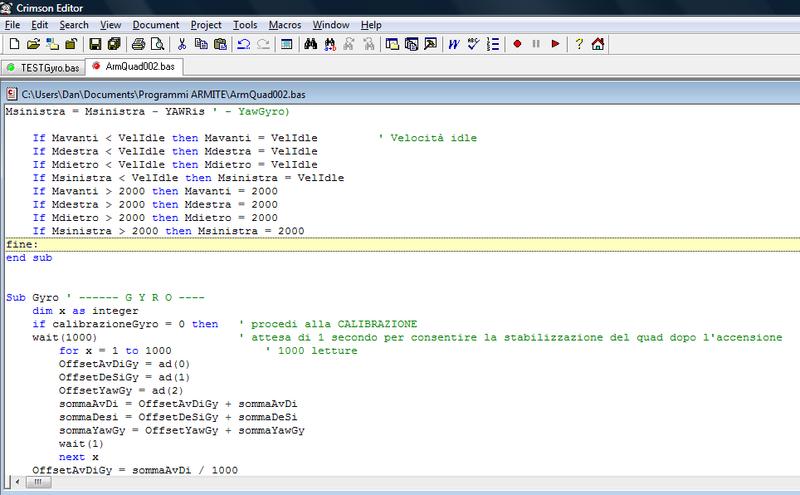 Quando inizia quest'avventura sperai che avesse potuto succedere .... il fatto di vedere solo prodotti non di casa che svolacchiavano nelle pagine di questo forum mi infastidiva un po' ... ora è tutta un'altra cosa ... in merito ai risultati che hai ottenuto fino ad ora con questa seconda dimostrazione non c'e' dubbio che l'oggetto svolacchia proprio decisamente bene ... bello reattivo e stabile ... i gyro un po' sotto dimensionati in realtà non si vedono così tanto ... è anche vero che stai ancora volando indoor senza vento e sollecitazioni particolari ... ora non si tratta che uscir fuori e far vedere al tuo bel quad il mondo esterno ... a questo punto già che ci sei ti consiglierei di tirar dentro il mixer table come l'abbiamo fatto noi così puoi provare anche l'esa ....Allora il repository e il codice lo pubblichi ? Sono curioso di vederlo ... e di confrontaro con il mio in C++ per vedere quanto è realmente piu' semplice ed efficace il basic per arm che stai usando ...
